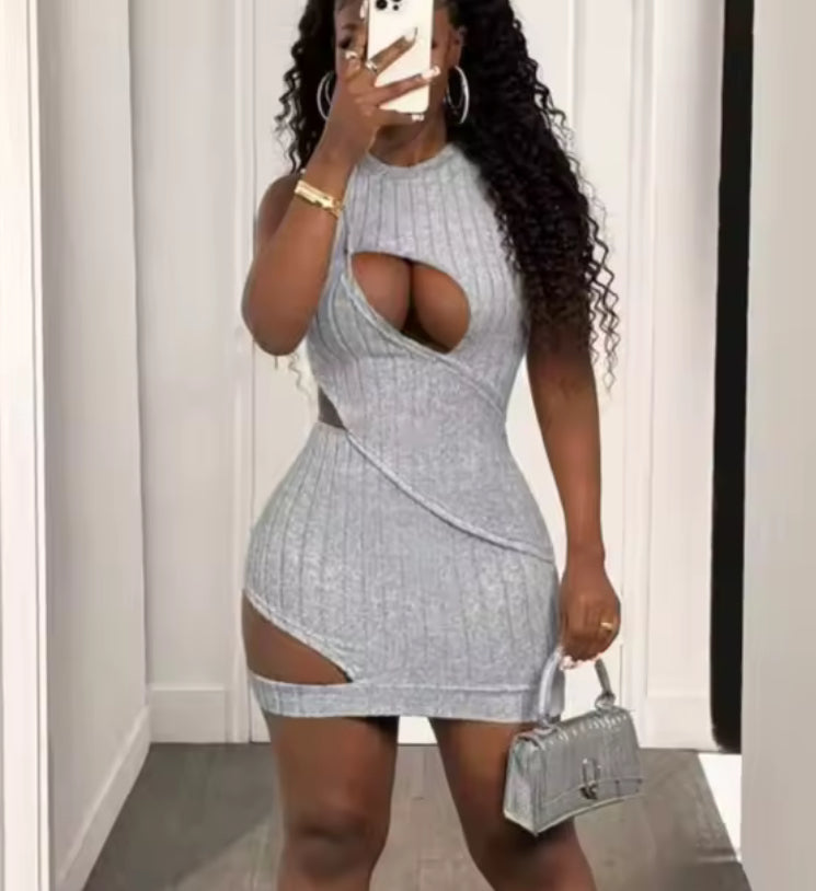 Cutout Ribbed Bodycon Mini Dress – Gray