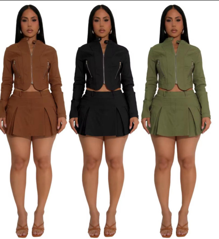 🌟 Website/Product Description “Chic Pleated Skirt & Cropped Jacket Set”